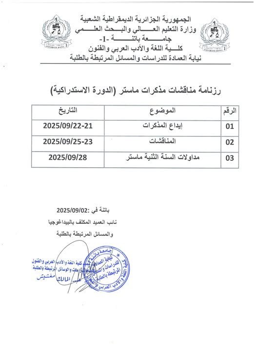نـائب العـميد المـكلف بـالدراسات العليا و الـبحث العـلمي و العلاقات الخاريجية