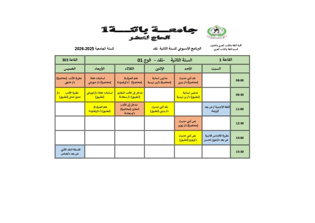 SECTION 1 -السنة أولى جذع مشترك- الوحدة الأولى SECTION 2 -السنة أولى جذع مشترك- الوحدة الثانية السنة الثانية ليسانس : تخصص لغة- :تخصص أدب :تخصص نقد السنة الثالثة ليسانس :تخصص لغة :تخصص أدب :تخصص نقد
