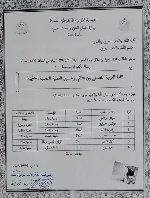 اللجنة العلمية لقسم اللغة و الأدب العربي
