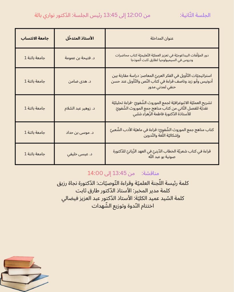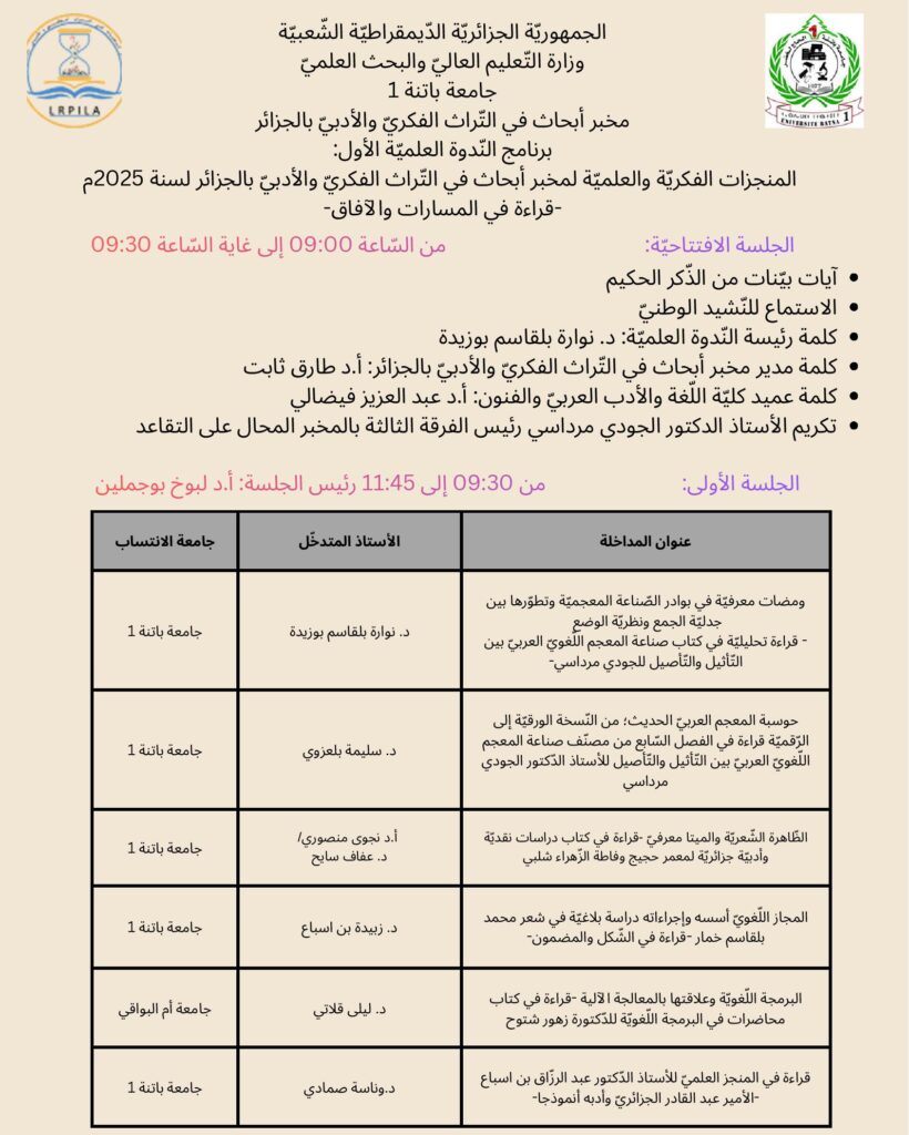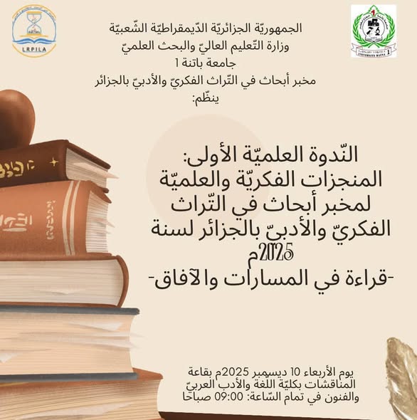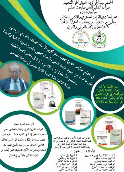 الندوة العلمية الأولى: المنجزات الفكرية والعلمية لمخبر أبحاث في التراث الفكري والأدبي بالجزائر لسنة2025