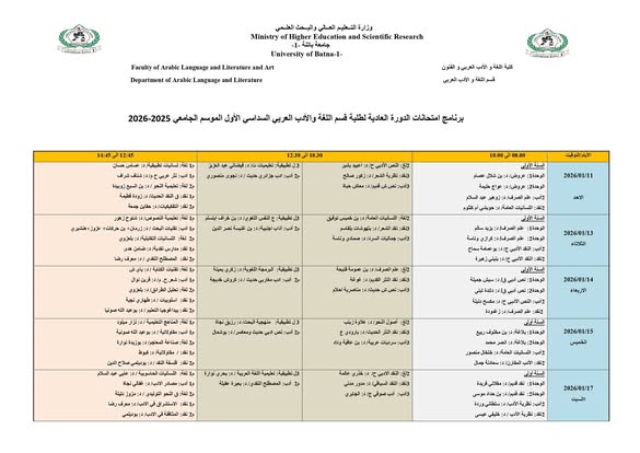 برنامج إمتحانات السداسي الأول قسم اللغة و الأدب