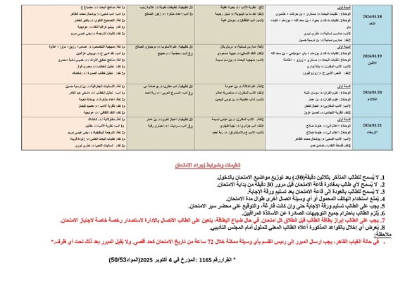 برنامج إمتحانات السداسي الأول قسم الأمازيغية