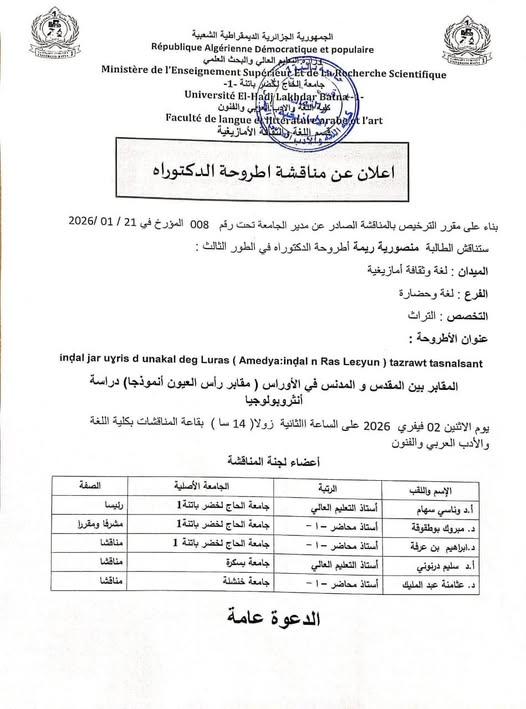 مناقشة اطروحة دكتوراه للطالبة منصورية ريمة