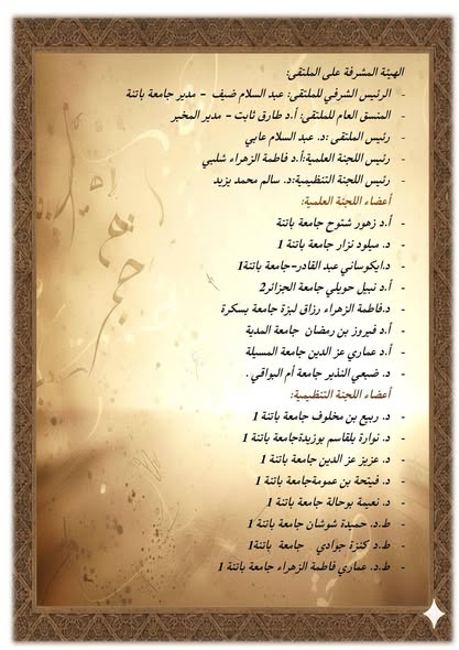 – الرئيس الشرفي للملتقى: أ.د .عبد السلام ضيف – مدير جامعة باتنة1