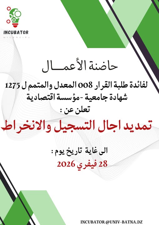 تم تمديد آجال التسجيل في إطار شهادة جامعية -مشروع مؤسسة اقتصادية إلى غاية 18 ديسمبر