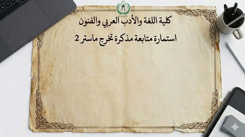 تنهي إدارة الكلية إلى علم طلبة السنة الثانية ماستر أنّه، وفي إطار متابعة إنجاز مذكرات التخرّج وتحسين آليات التأطير والمتابعة، وُضعت استمارة إلكترونية خاصة بمتابعة إنجاز مذكرة الماستر، يُرجى من المعنيين استكمال المعلومات المطلوبة فيها بدقة وأمانة، علمًا أنّ استمارة أخرى يتكفّل الأستاذ المشرف باستيفائها.
