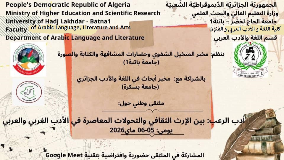 ينظم: مخبر المتخيل الشفوي وحضارات المشافهة والكتابة والصورة(جامعة باتنة1)